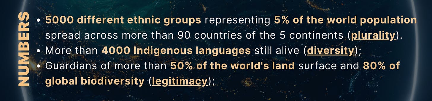 This series is to propose a positive framework to address the metacrisis by promoting web3 indigenous institutions that nurture the future of Humanity. To breakdown this affirmation, we will first define what we call "Indigenous Mindset”, in order to explain why indigenous peoples are today among the most legitimate community to help us foster collective action in the face of interconnected challenges, namely the metacrisis. Finally, we will dive into the symbolical relationship between web3 and Indigenous Mindset, revealing the relevance to imagine Decentralised Indigenous Organisations (DIOs) as a positive framework to foster global coordination.